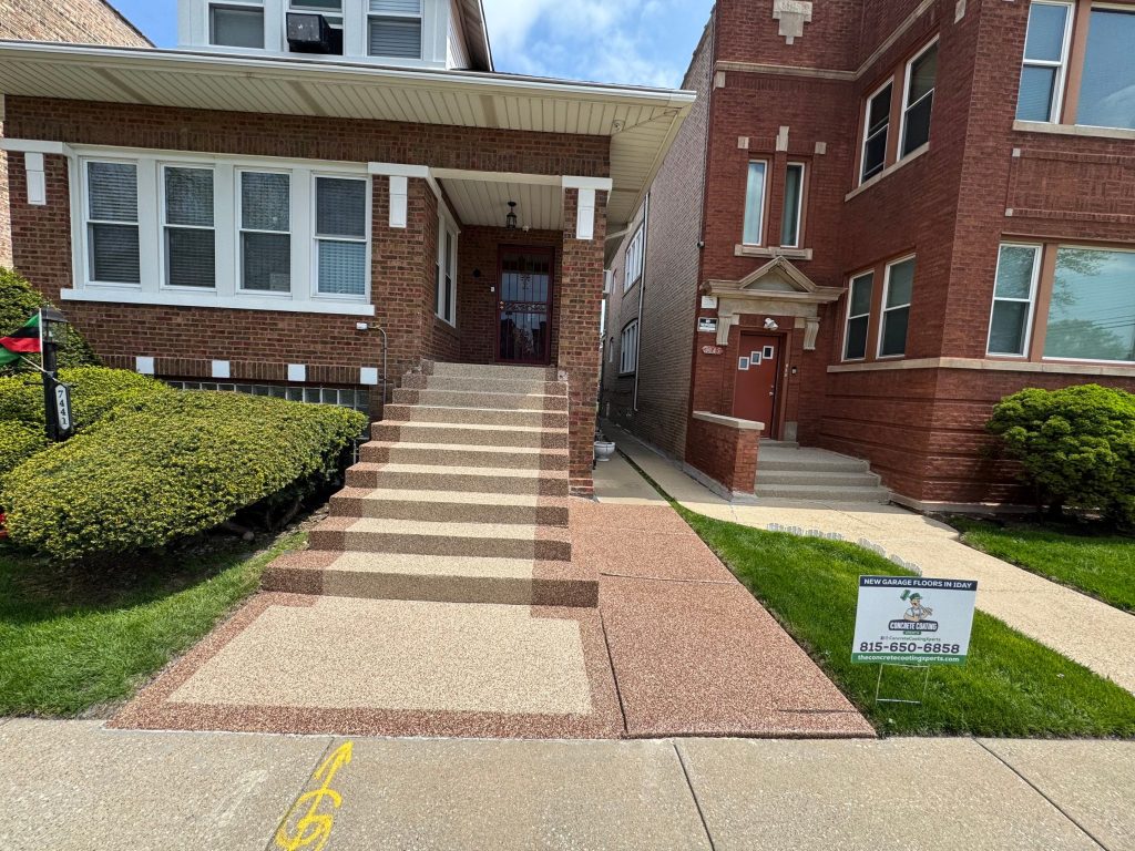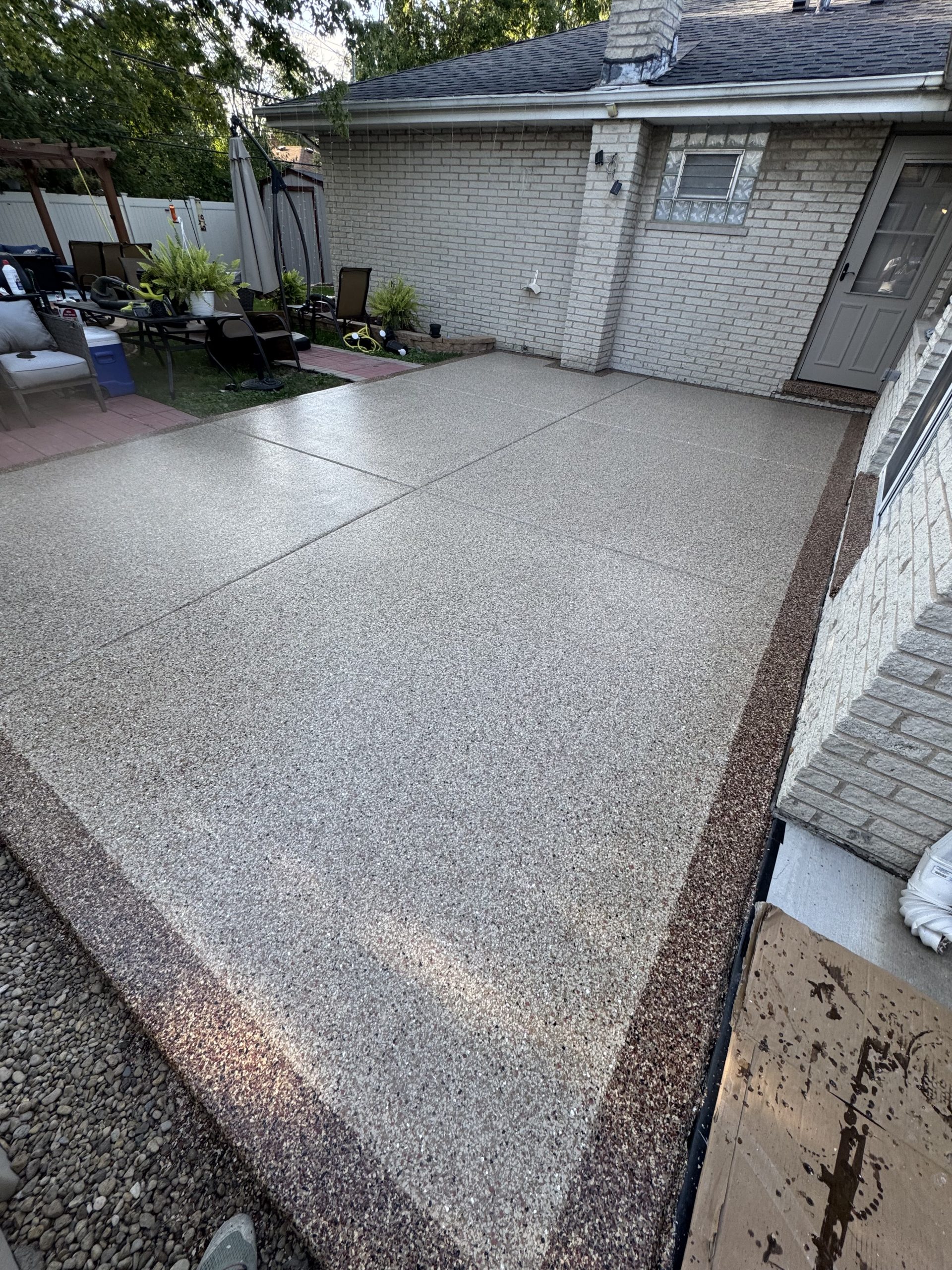 As a family-owned and operated business with over 15 years of experience and 100+ five-star reviews, we’ve helped homeowners and business owners across Chicagoland turn aging concrete into beautiful, durable surfaces they’re proud of. Our in-house team—never subcontractors—uses a premium polyurea and polyaspartic system built to withstand Midwest weather and deliver long-lasting, low-maintenance results.